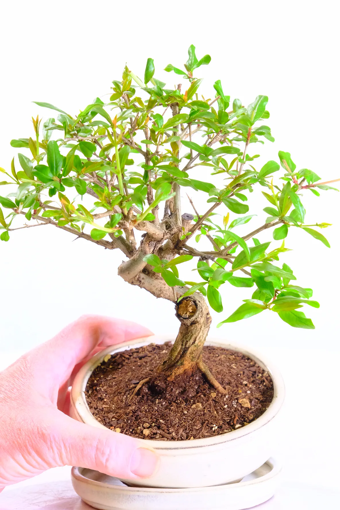 Twisty Pomegranate Bonsai Tree – Striking Orange Flowers and Fruits